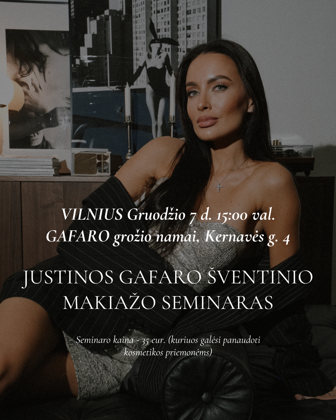JUSTINOS GAFARO ŠVENTINIO MAKIAŽO SEMINARAS 12.07 D. VILNIUJE